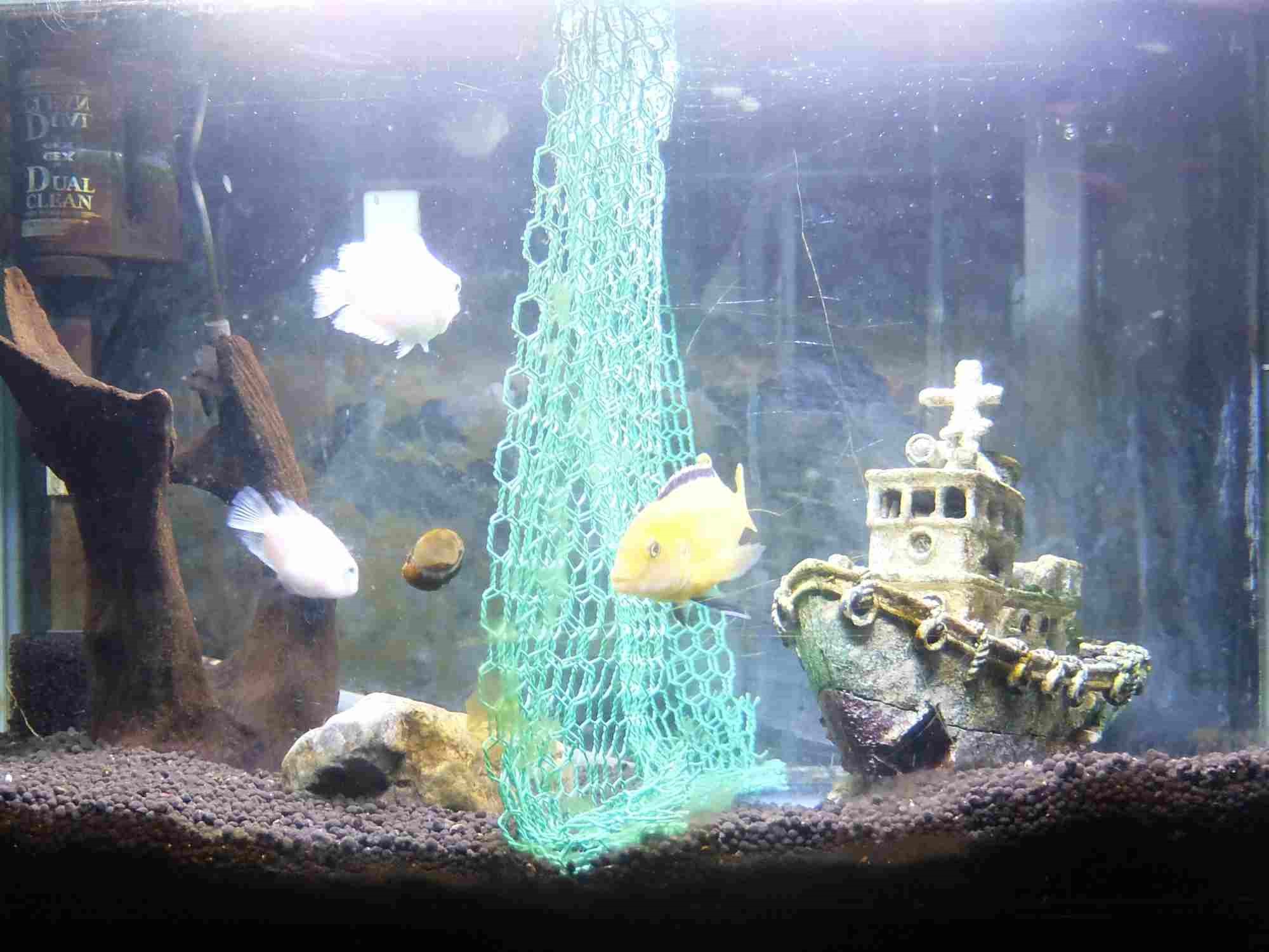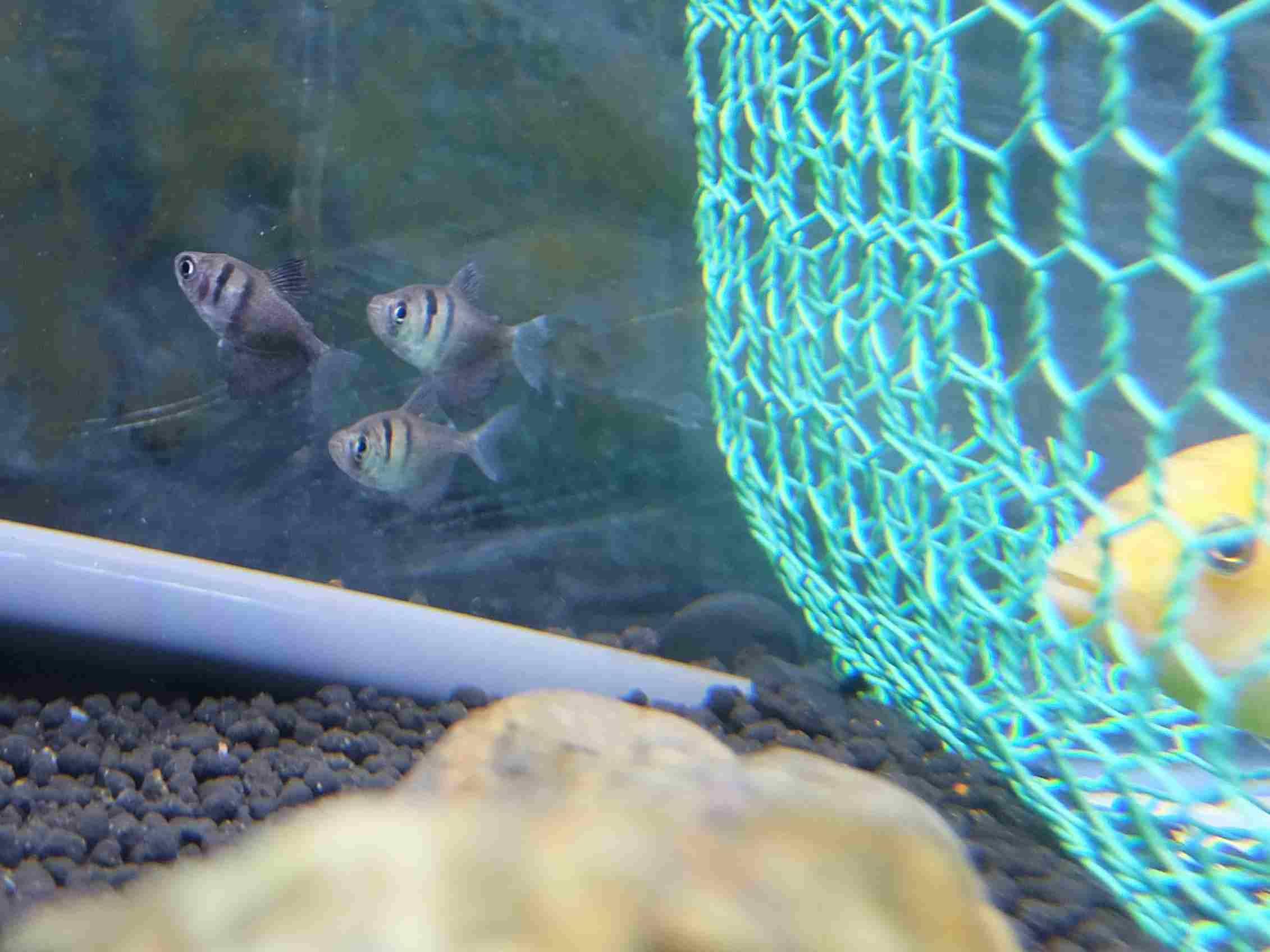 区分けの為に網を入れてみました。これで、水槽内が平和になりました。