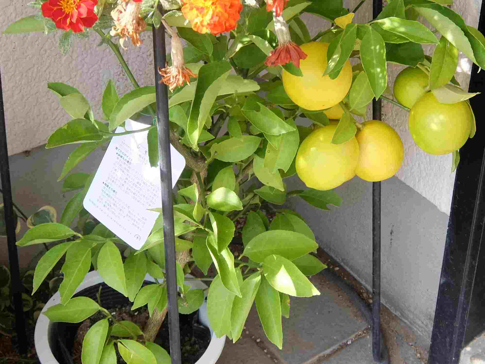 そして、玄関わきの鉢の木は新入りのレモンです。