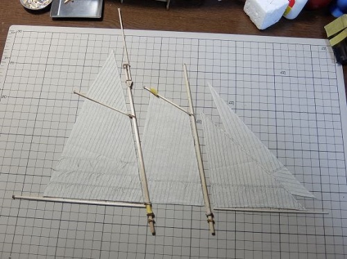 ただ、最上段の帆だけはどうにも合わないので帆の型紙を自作した。