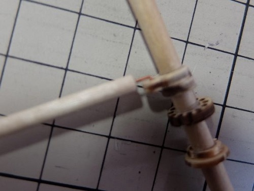 そこの継ぎ足すためのパーツを組むためにマストを細く削らなければならない。