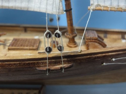 マストと船体をつなげる張線にもちょっと大きめの滑車があります。