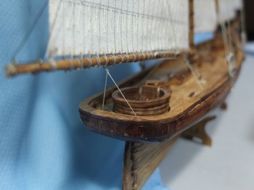 本当は船体と滑車との間は鉄板のようなのですが、糸で済ませています。