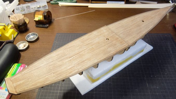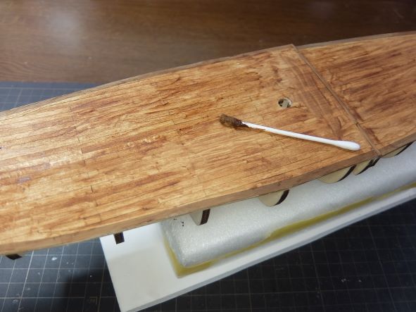 今後の作業のためにデッキ部を型紙張ってマスキングしました。