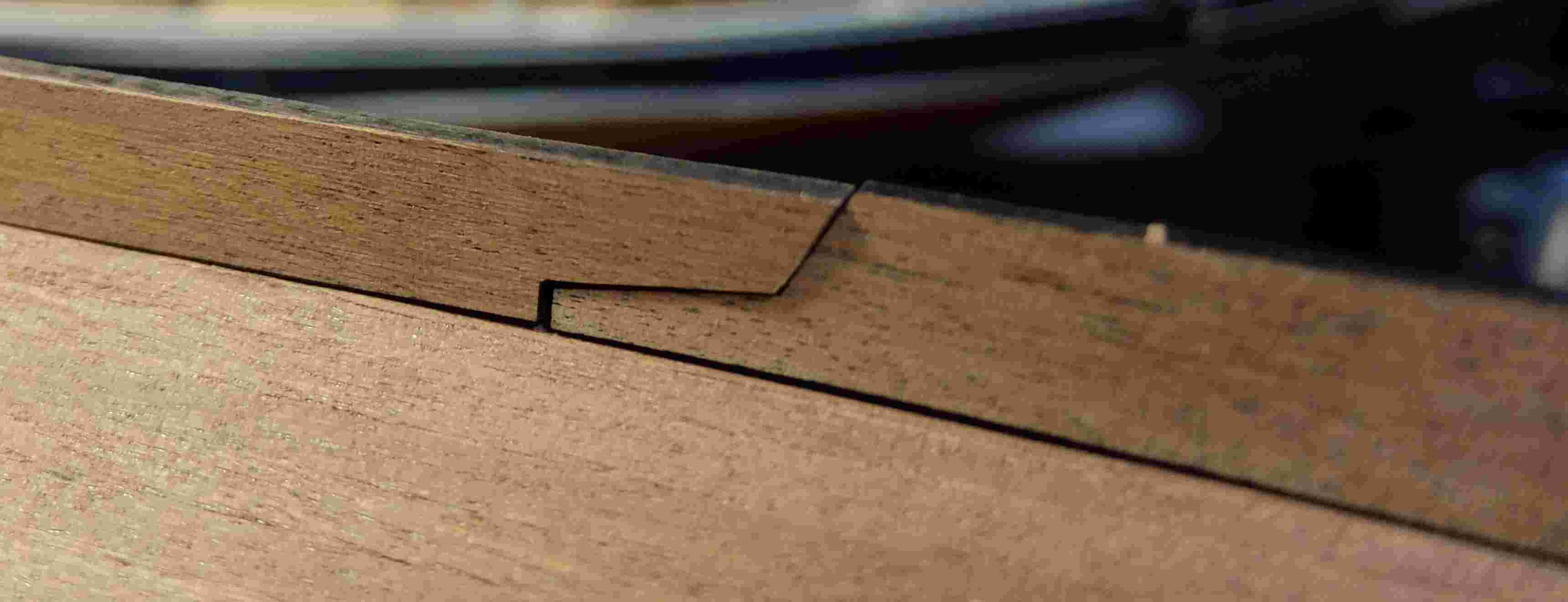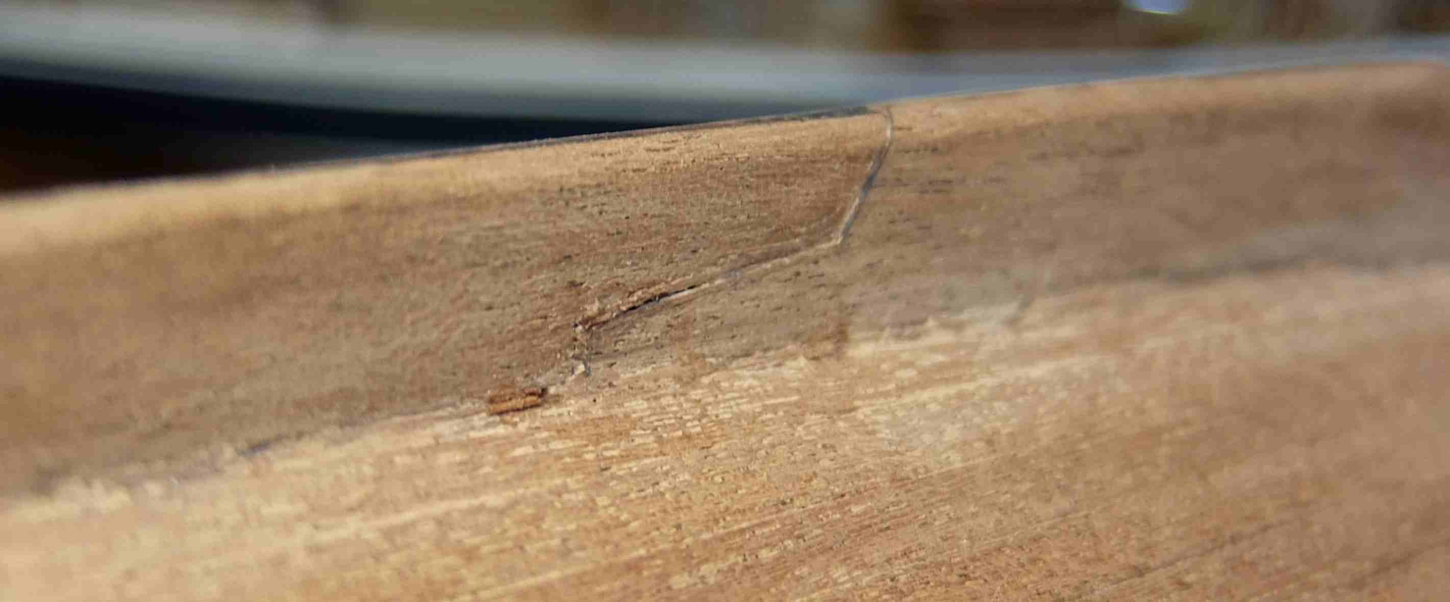 接着した後に端材を埋め込んでペーパー掛けで処理してみました。