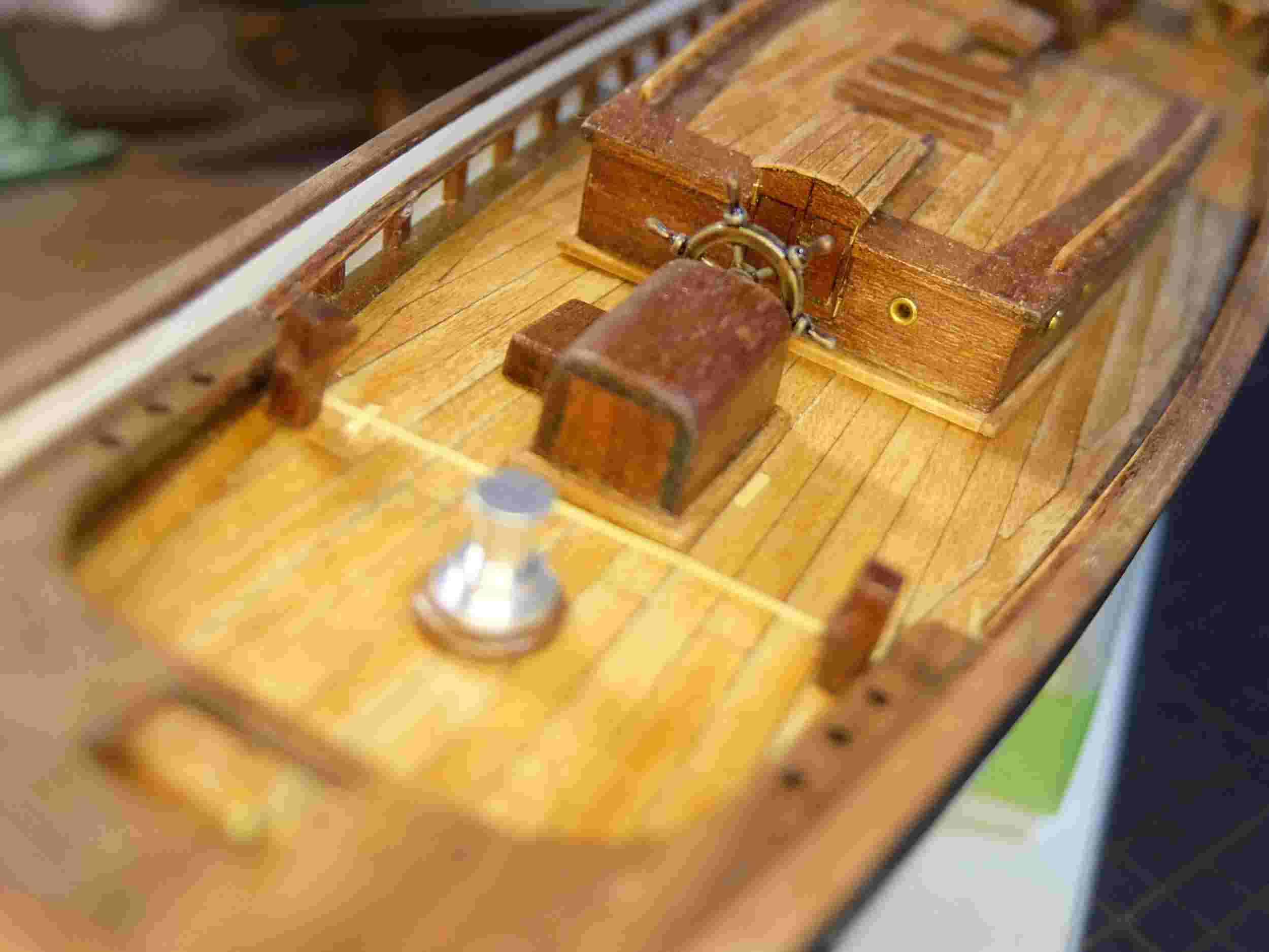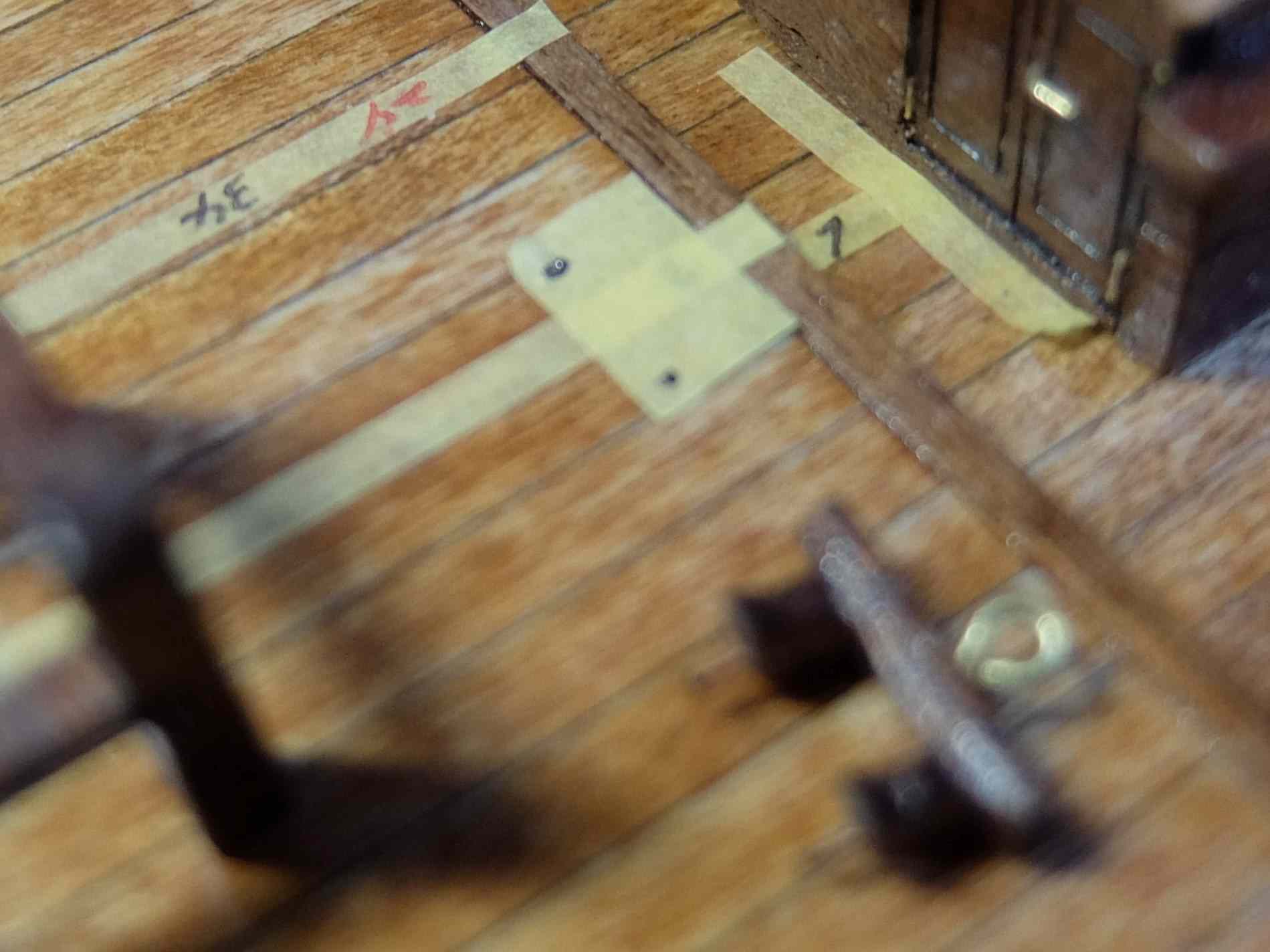 構造物に真鍮線を埋め込み、デッキには穴を開けて固定しました。