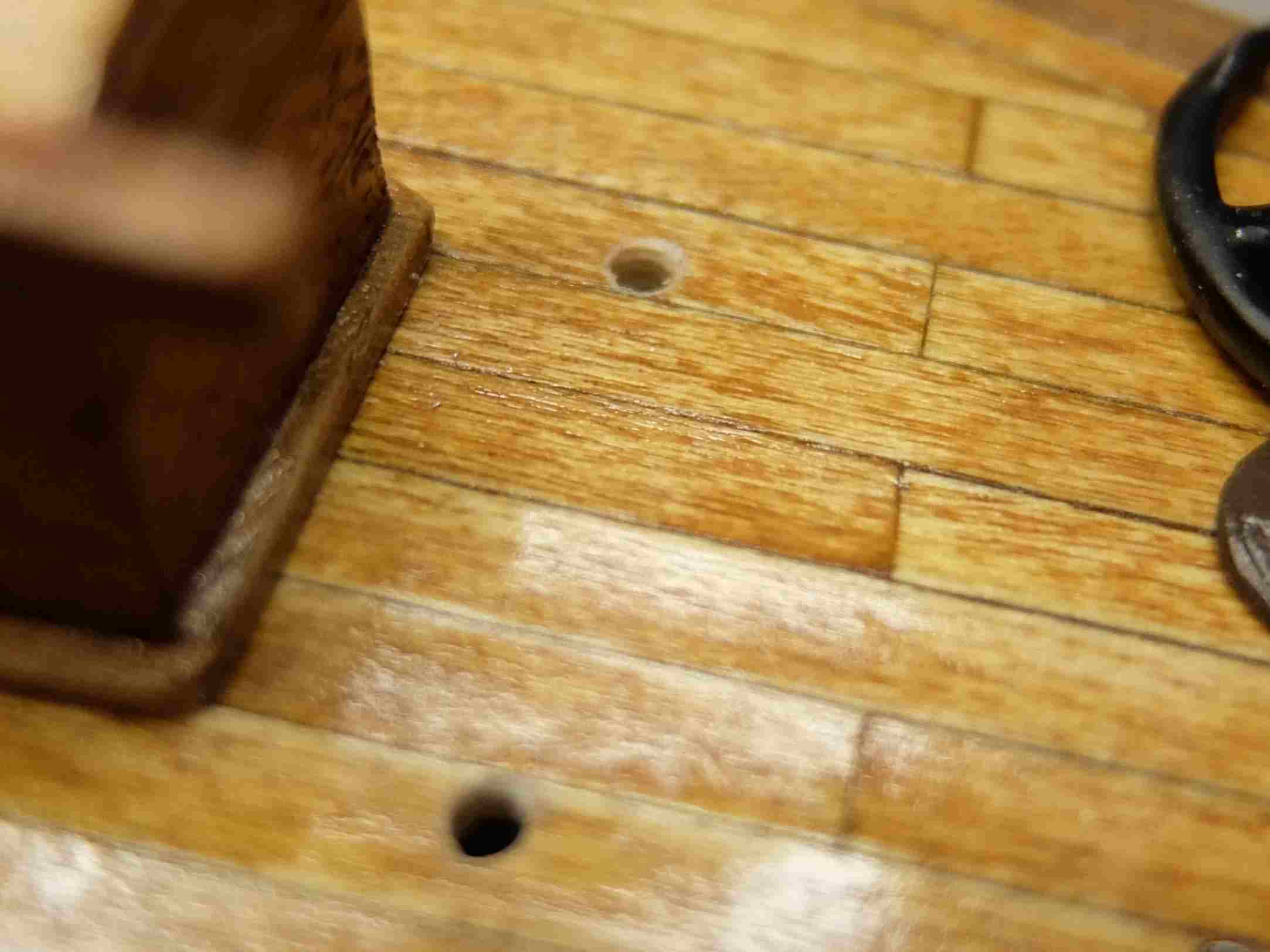 塞いでいた穴を開け直して、ついでにデッキにも穴を開けました。