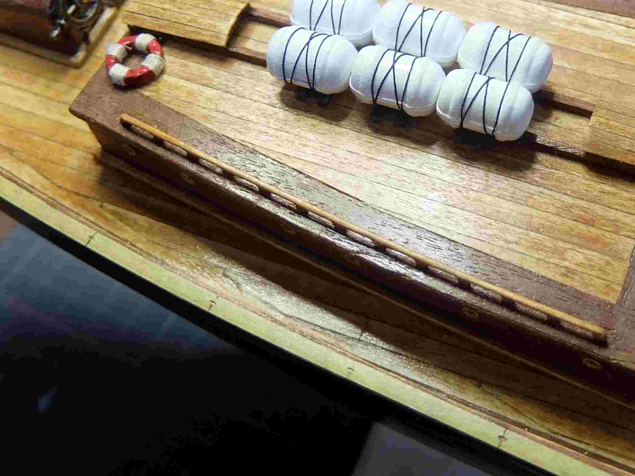 アンカー(錨)と船尾甲板室付近に手すりを設置します。