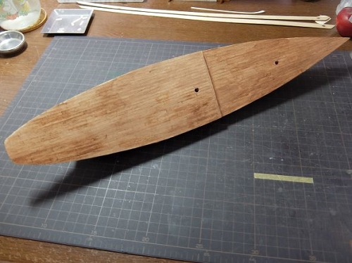チーク色の水性ニスを3度塗り重ねて#600と#1000でペーパーがけ
