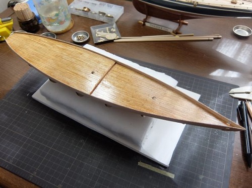 さ〜て、次は船体の板張りに入りましょう。