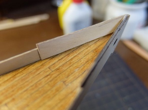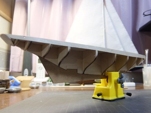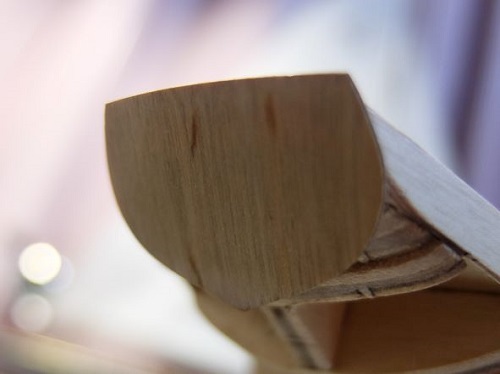 船首の内側にも端材を切り出して貼り付けて