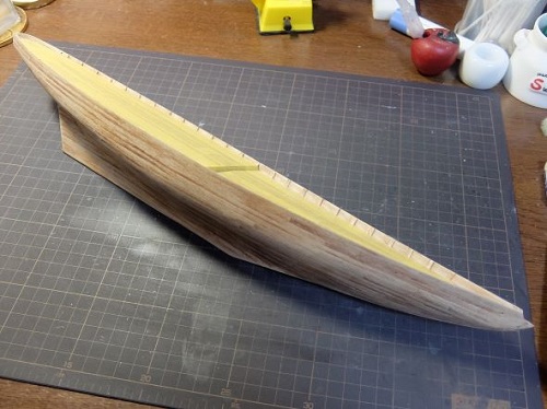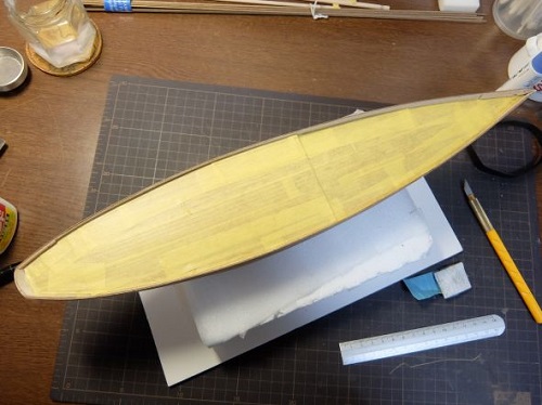 ラダーと船体にも下地塗料を擦り込み