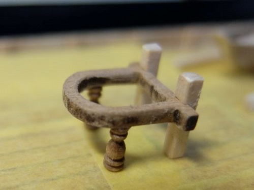 左はメインマストの根本に設置するビット(繋柱)