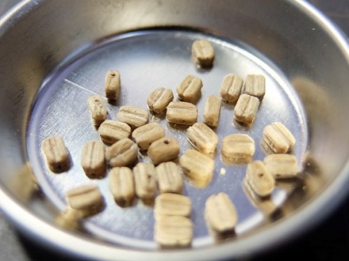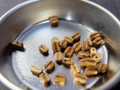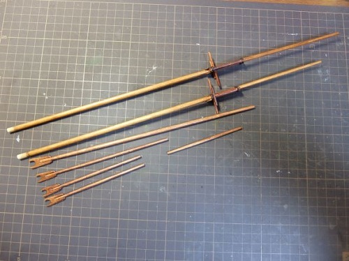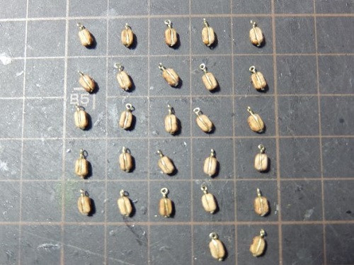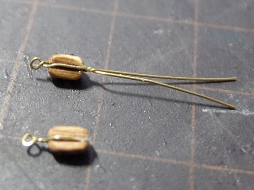 0.5mmの真鍮線に通してチーク色でニス塗り。