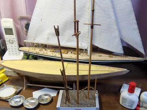 今回は、マストを塗装し単滑車(ブロック)を取付けました。