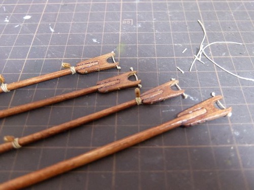 塗装し終えたマストに説明書を参照して単滑車を取付けます。