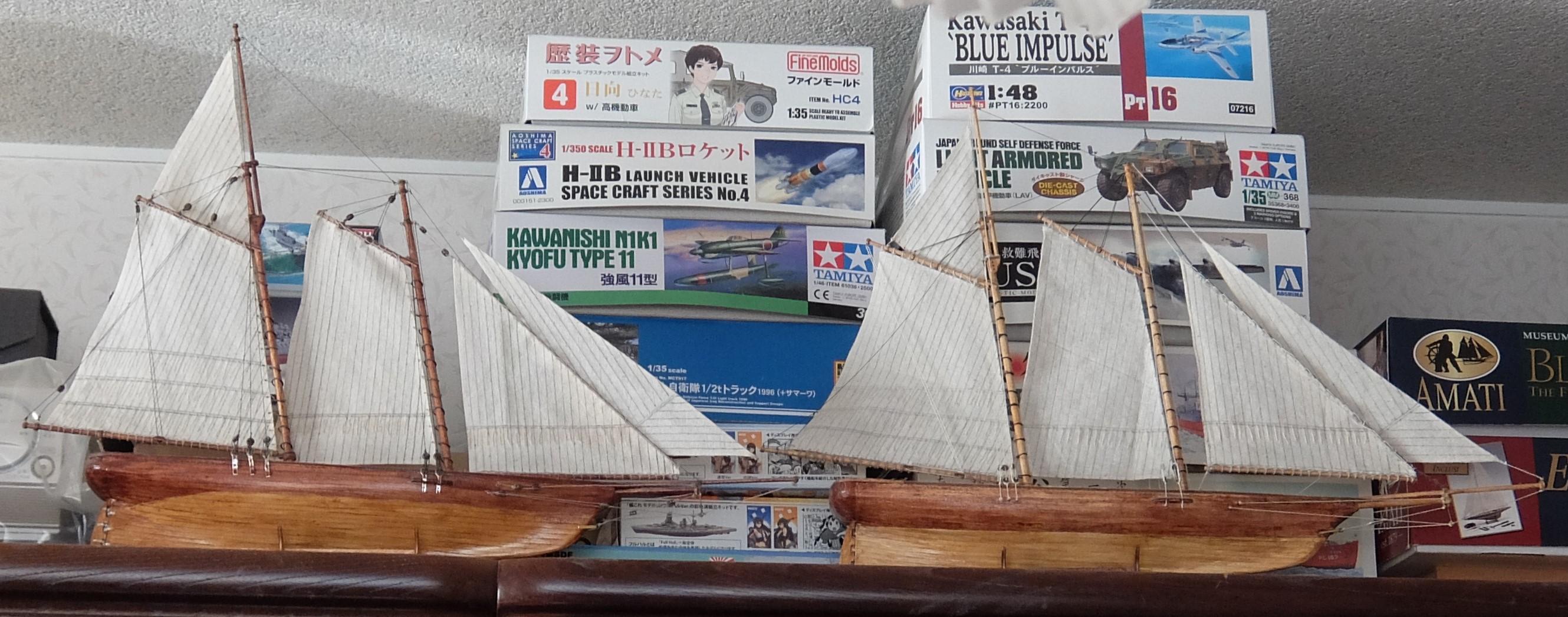 いままでパソコンの裏に置いてあった2艘のヨットですが