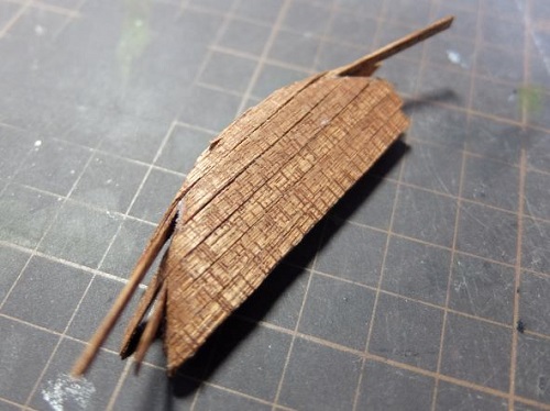 船体の一部はマホガニーの生地で仕上げたいのでマホガニー材を張ります。