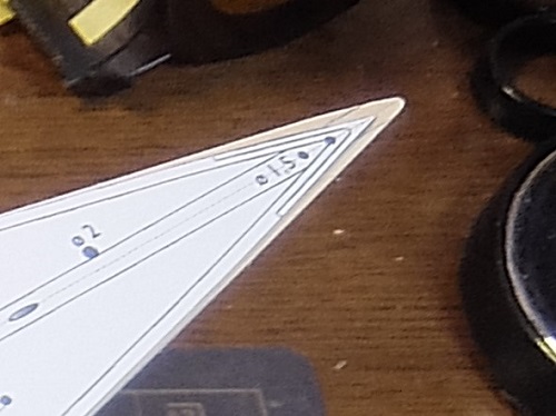 型紙に合わせてΦ1.5mmとΦ2.0mmの穴あけの位置を決めますが