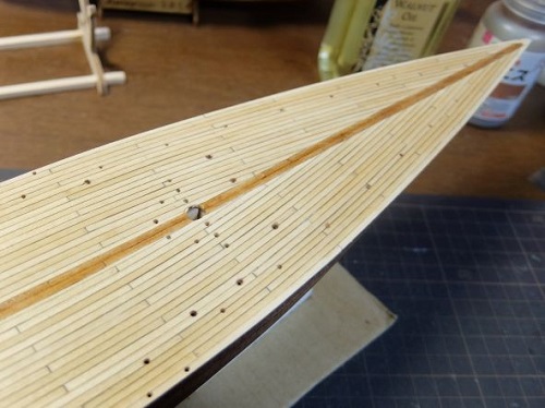 デッキ板を張って船体の長さが決まった時に長さを測定し合わせるべきでした。