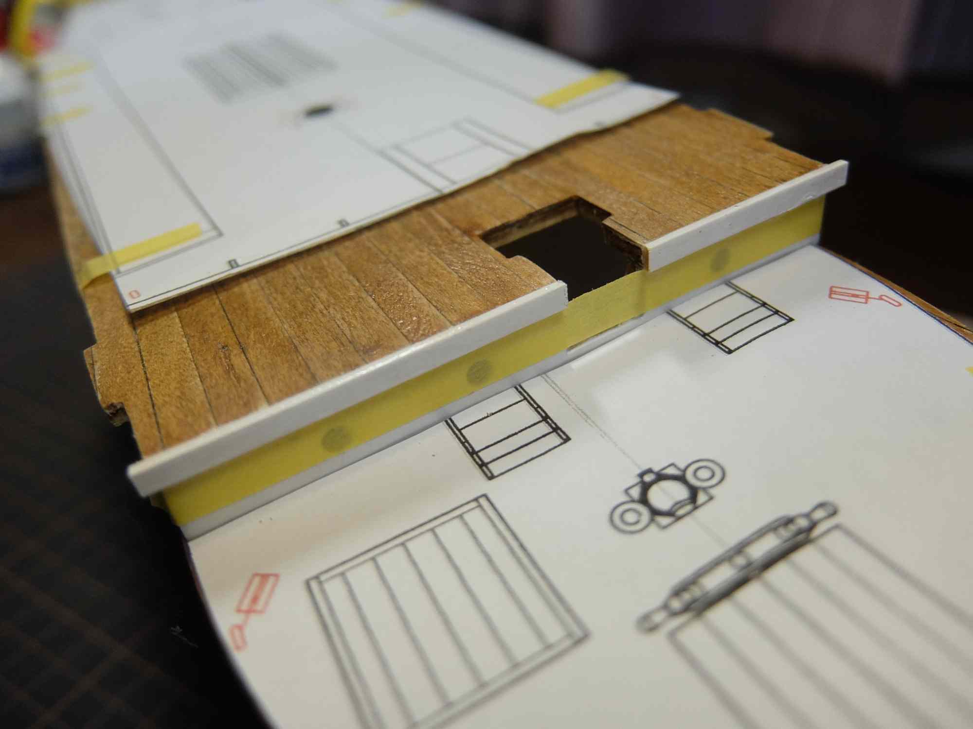 デッキの外舷に沿って立ち上げた波の侵入を防ぐ囲いを取付けます。