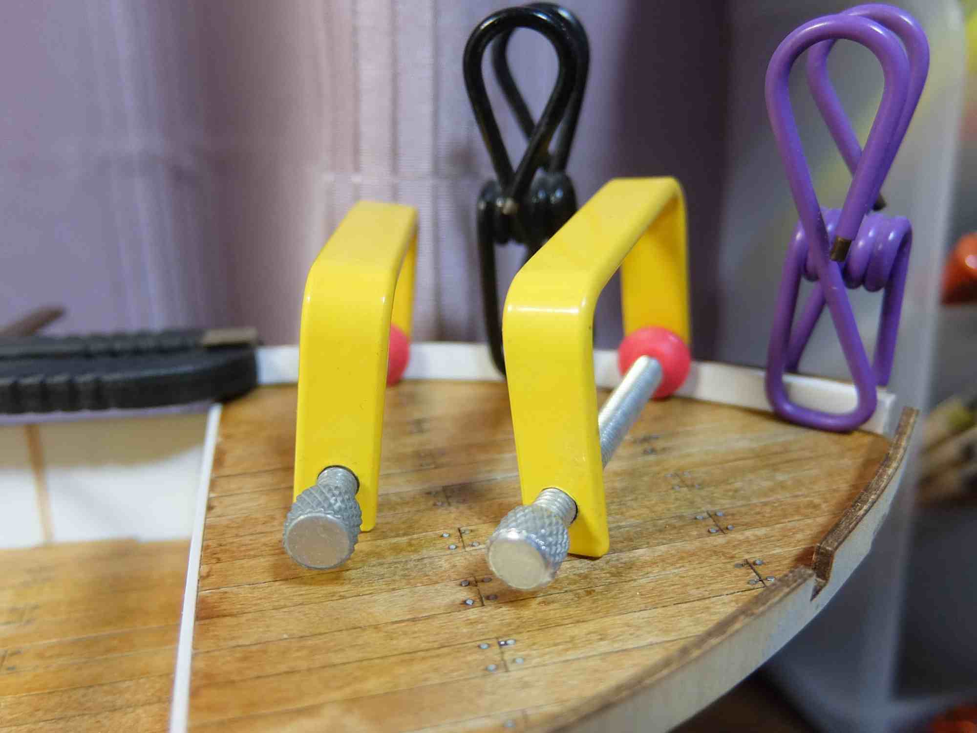 船首にもブルワークを取付けし釘で固定。