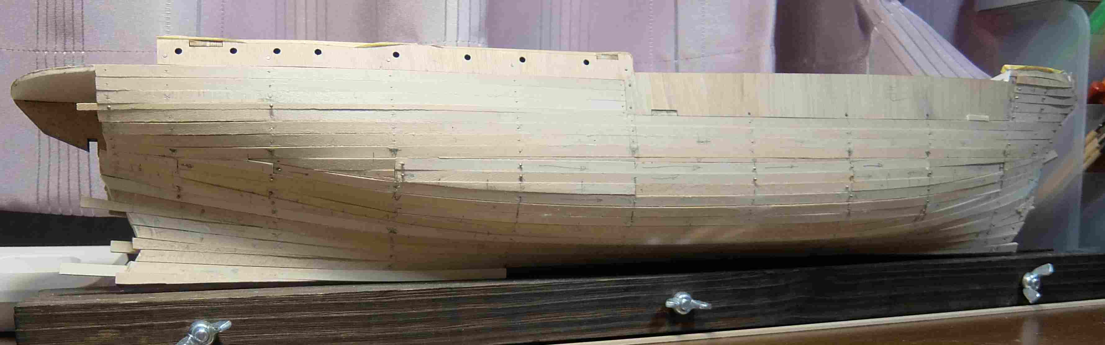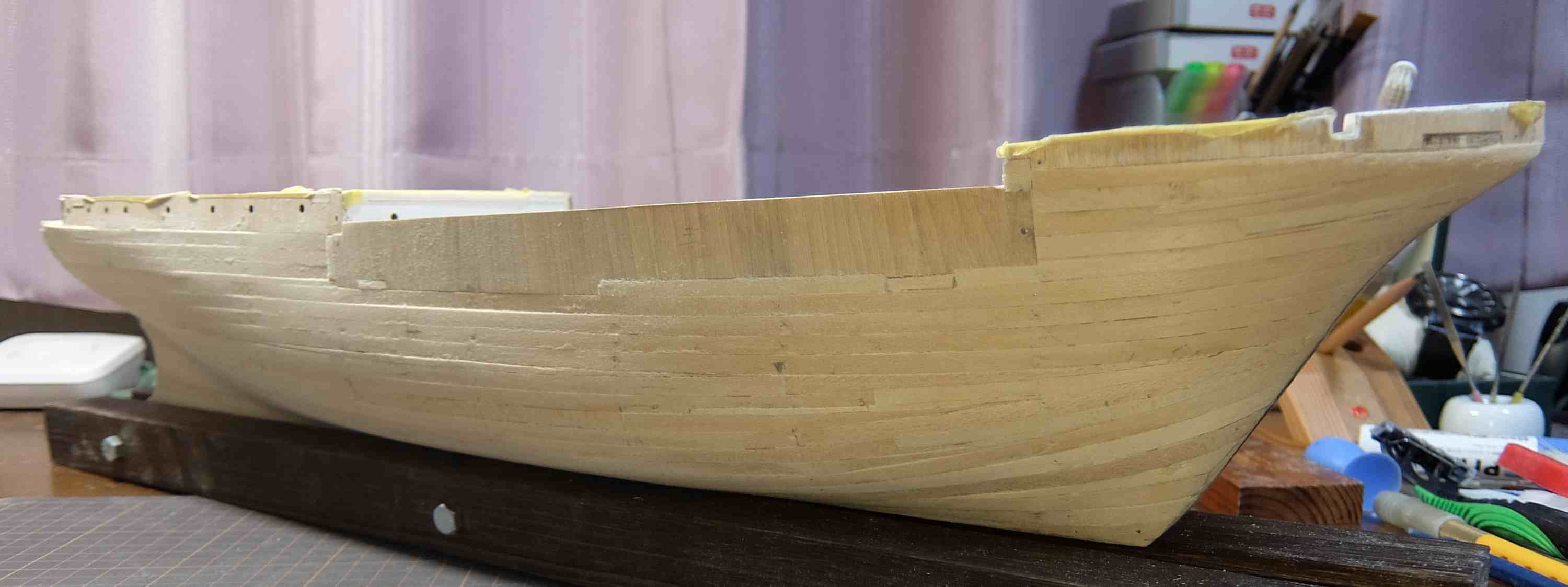 やっと板張りを終えたと思ったら、船尾が残っていました。