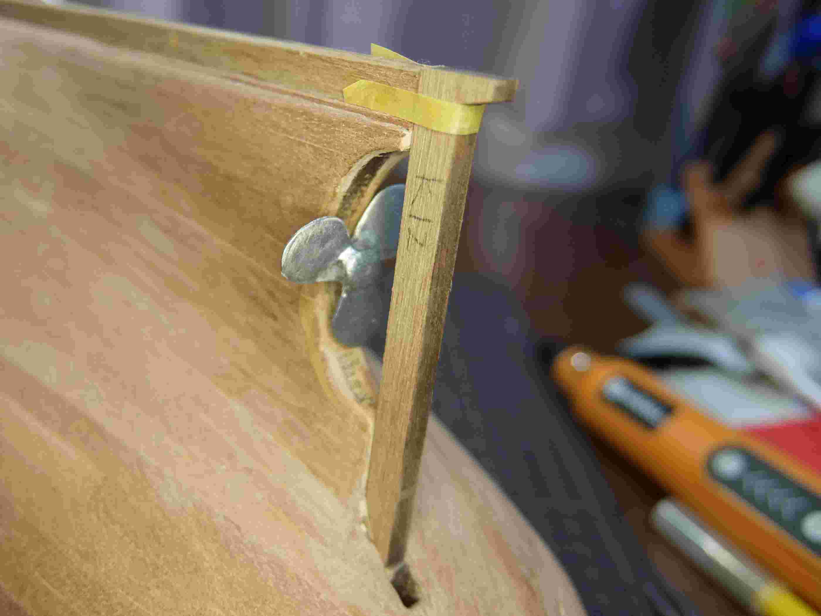 ラダーを受ける板を船体に接着し、接着部を均等に均し
