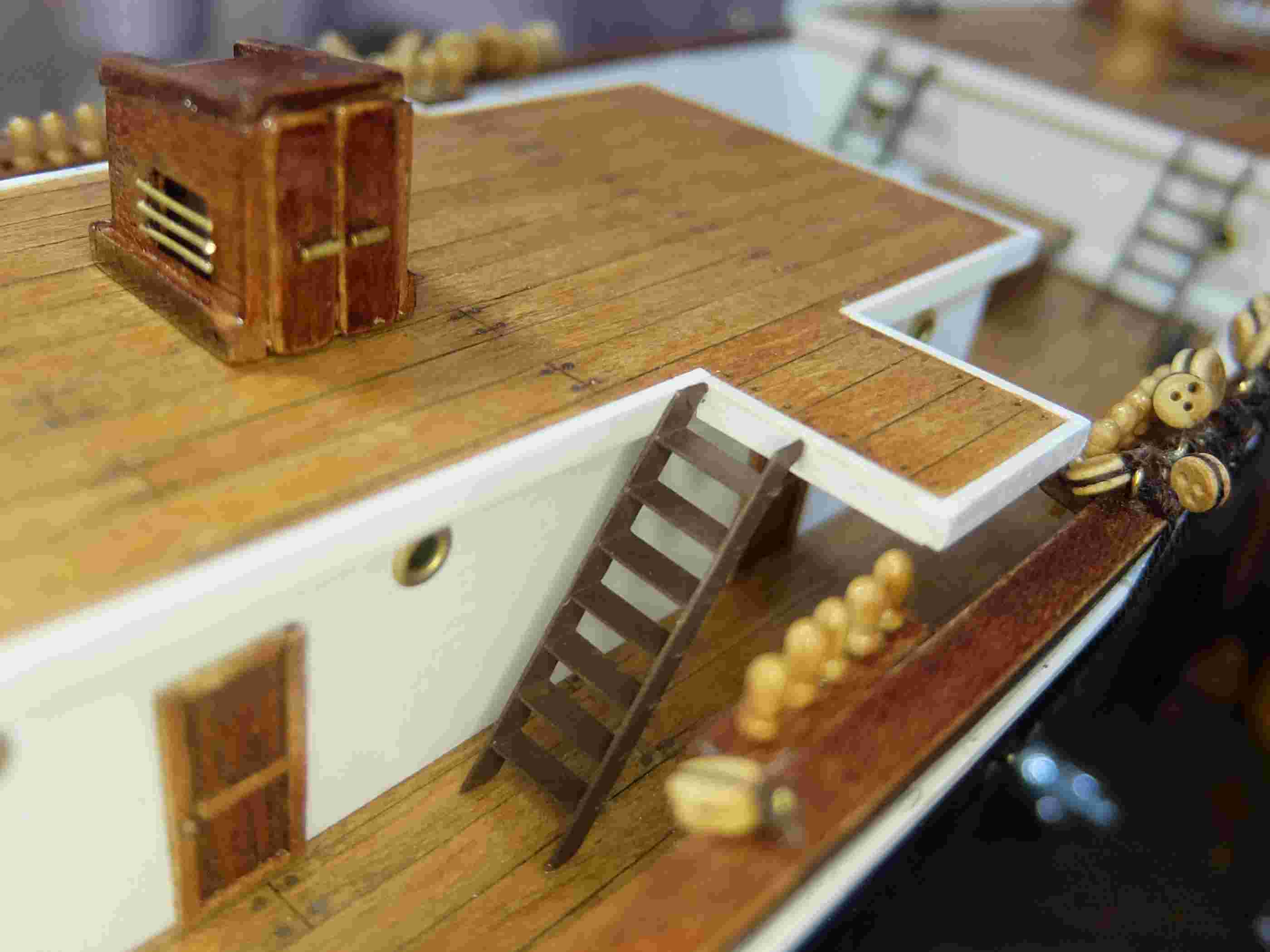 途中にも7段の階段があって、船首デッキには5段の階段で