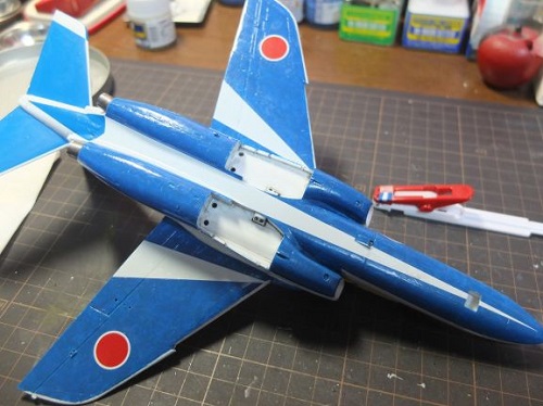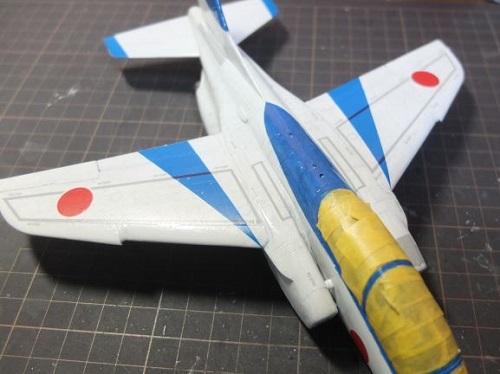 尾翼の裏はデカールを貼ったのですが塗装と色つやが違いますね。