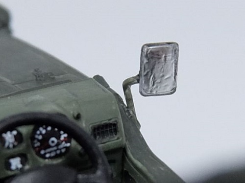 サイドミラーにはアルミテープを貼ってミラーを再現。