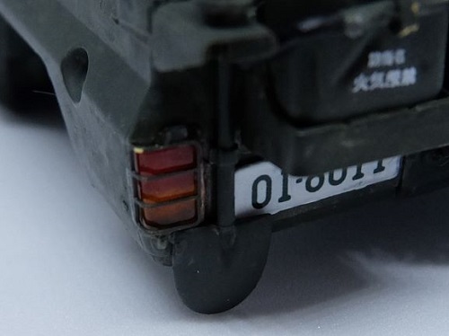 後部にも赤とオレンジで塗装したクリアーパーツを接着してガードも付けた。