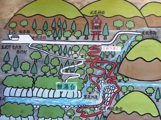 看板の赤いルートが「裏見ルート」です。