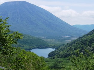 帰りに見た「湯ノ湖」とその先の「男体山」(去年の秋と今回です。)