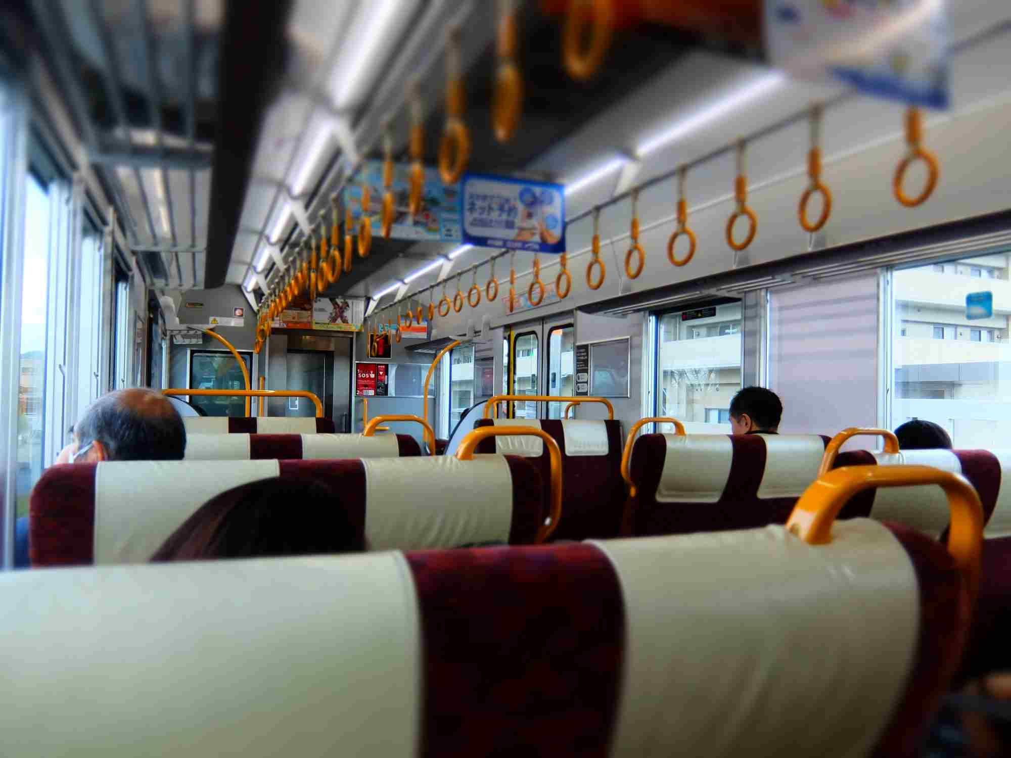 普通電車だけどグリーン席です。