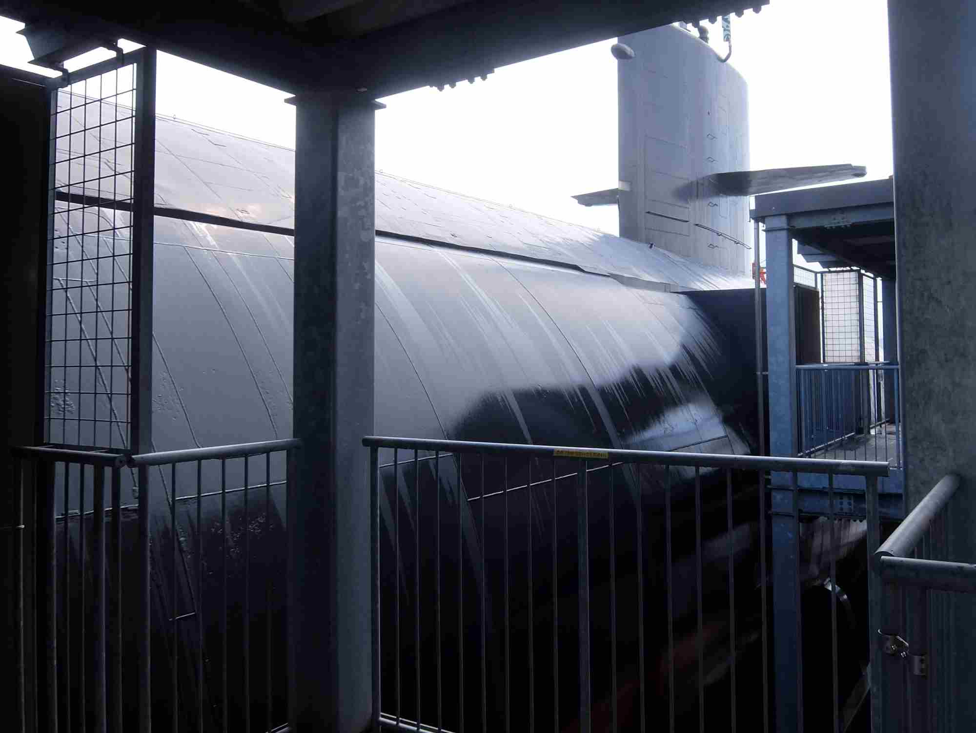 大きな本物の潜水艦が遠くからでも見えます。