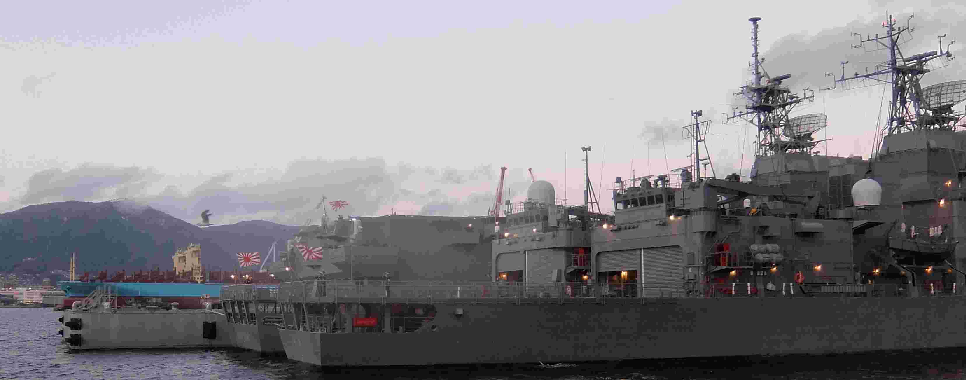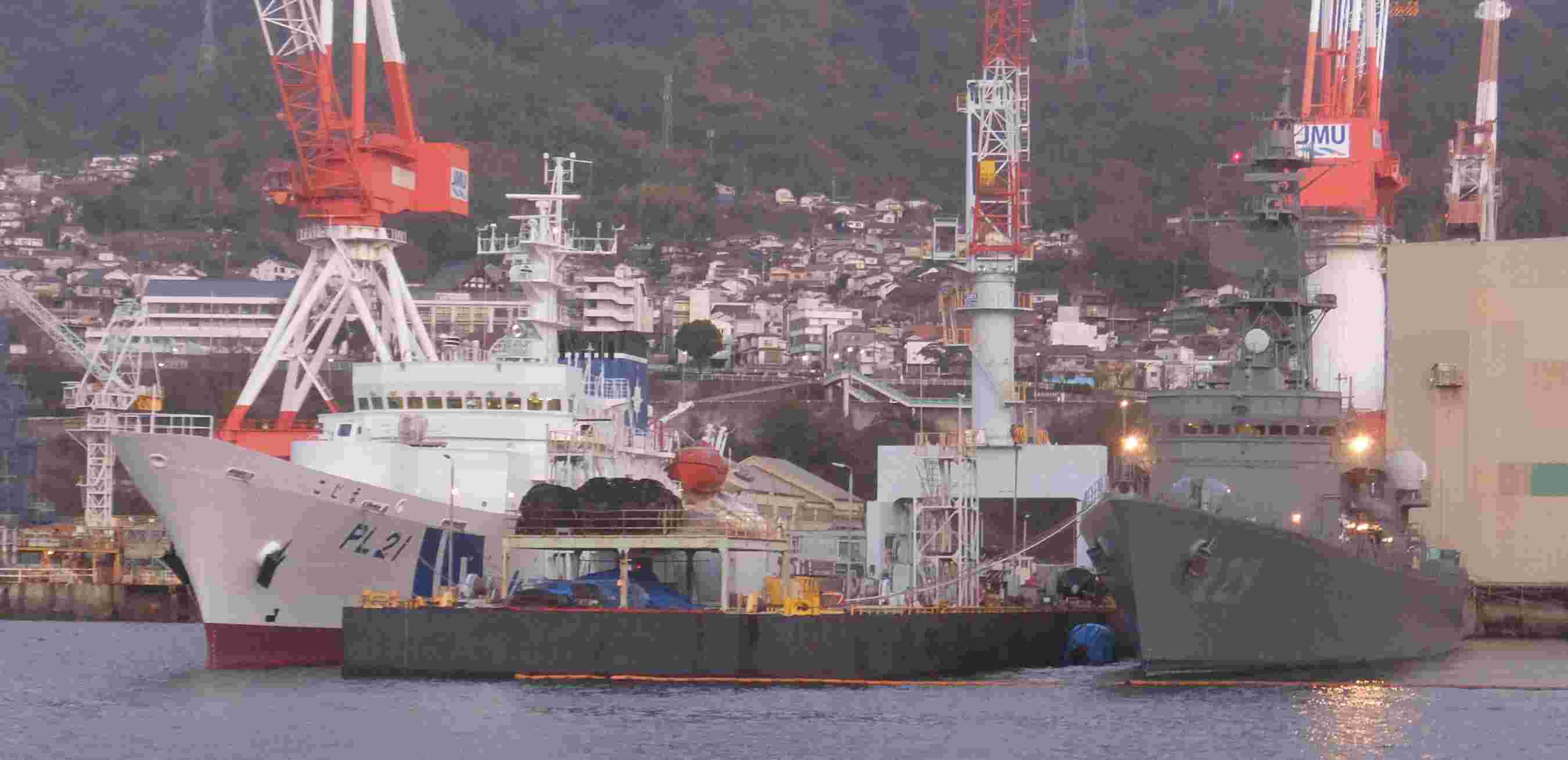 右上写真のドック内では護衛艦「いなずま」の修理中でした。