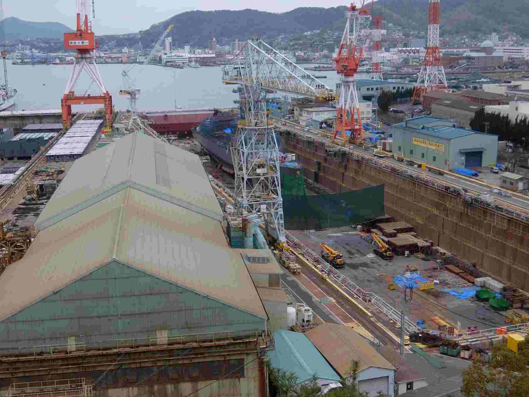 左上の写真が戦艦大和を造船したドック。今も現役です。