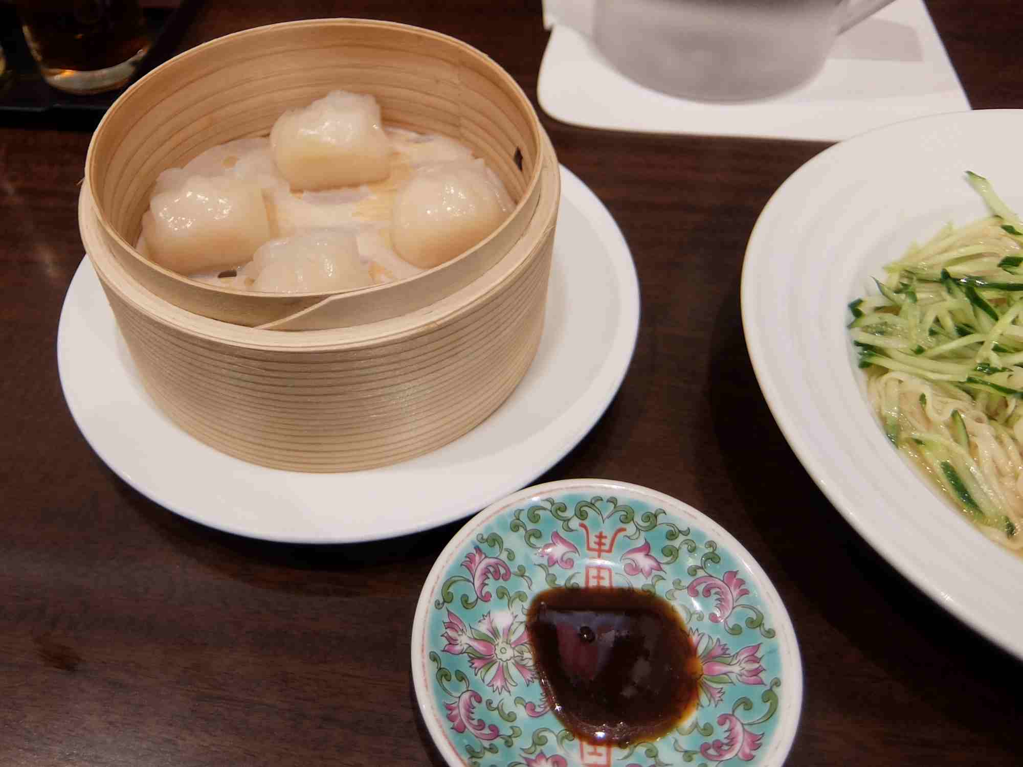 冷麺だけでは物足りないので一緒に頼んだ天心はエビ餃子