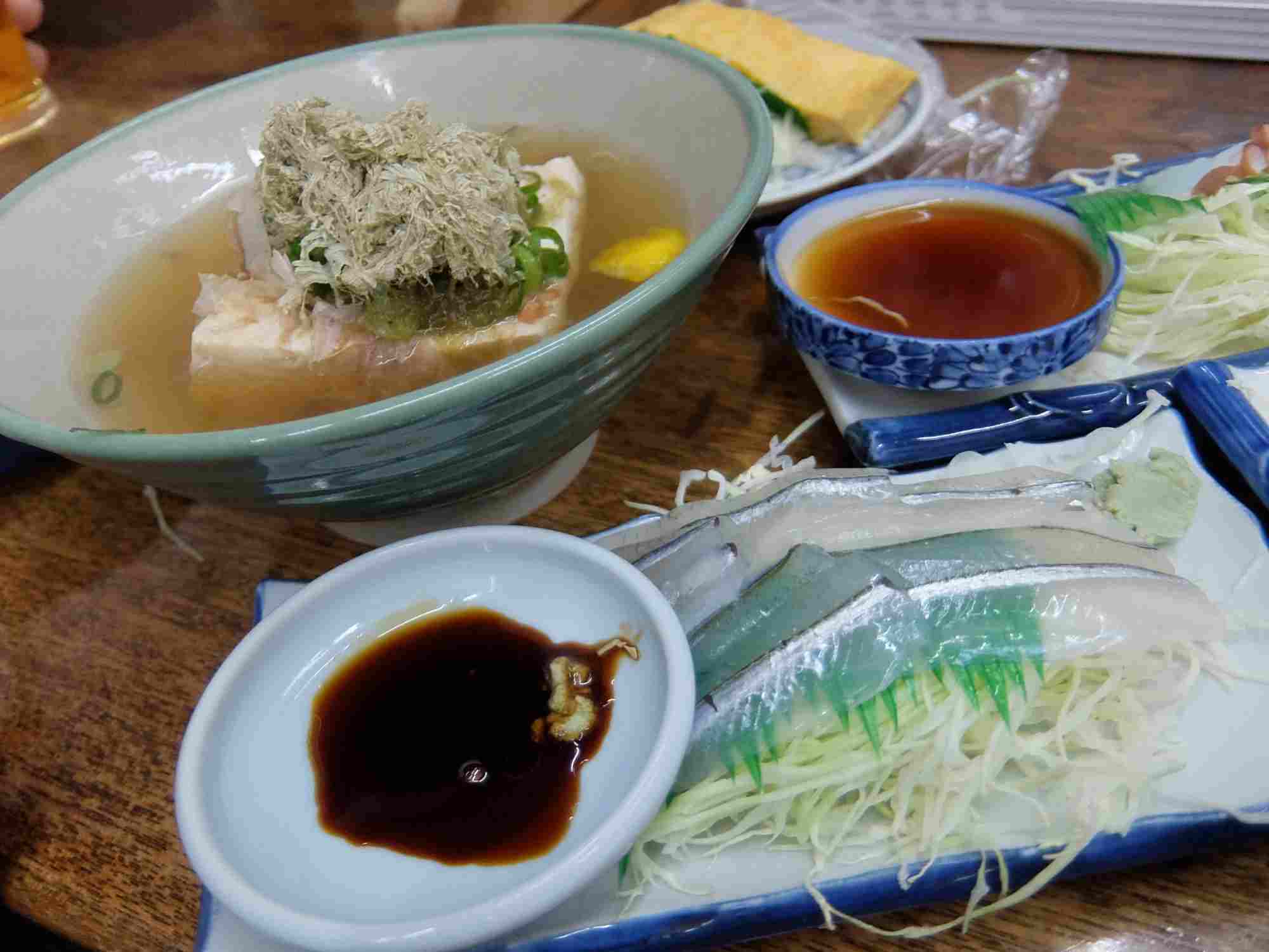 調子に乗って湯豆腐やら玉子焼きやらさよりのお刺身やらを持ってきて
