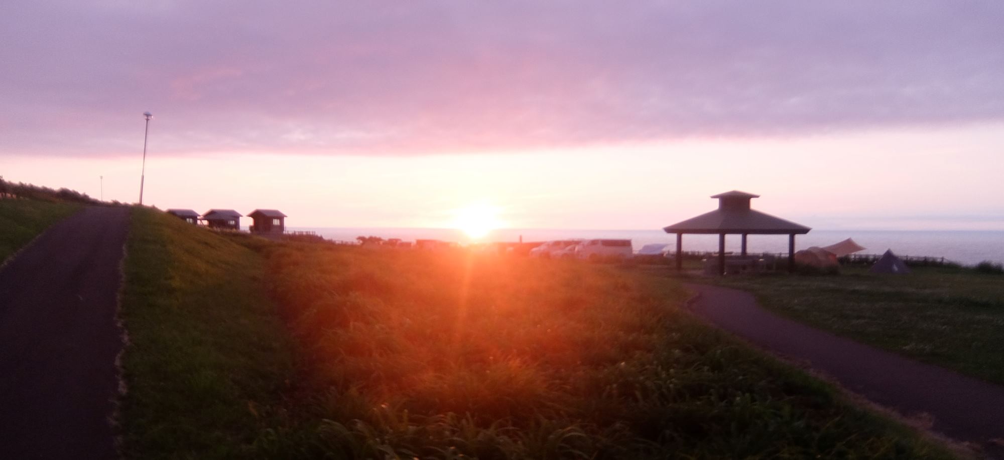 夕日の見える夕日台は場内だし、ちょと車で港に下りればコンビニも道の駅もある