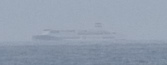 18時、沖合に船が見えた。明日乗る新日本海フェリーの新潟行きのようです。