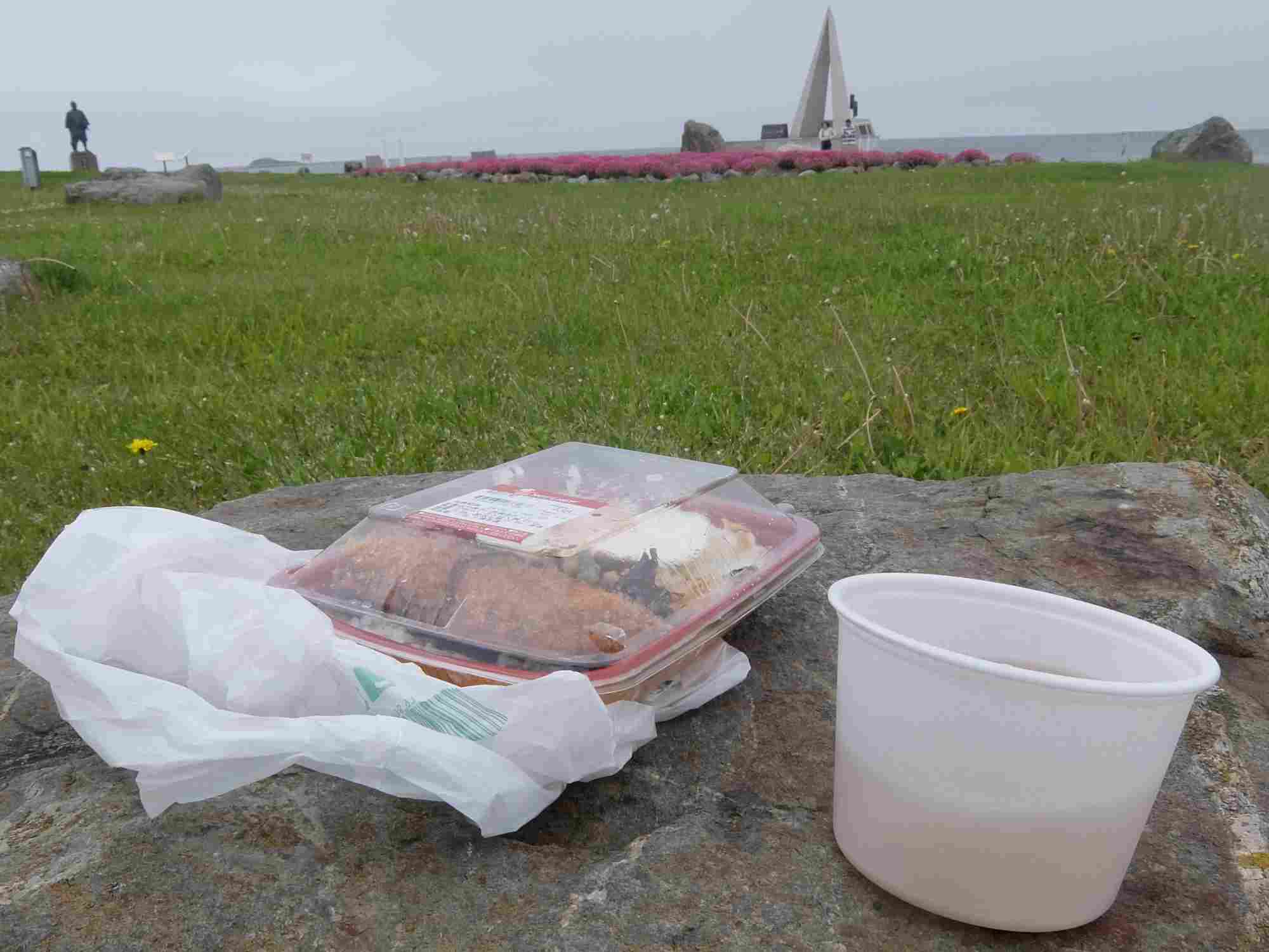 昼食:セコマののり弁と宗谷岬の「すりみ汁」