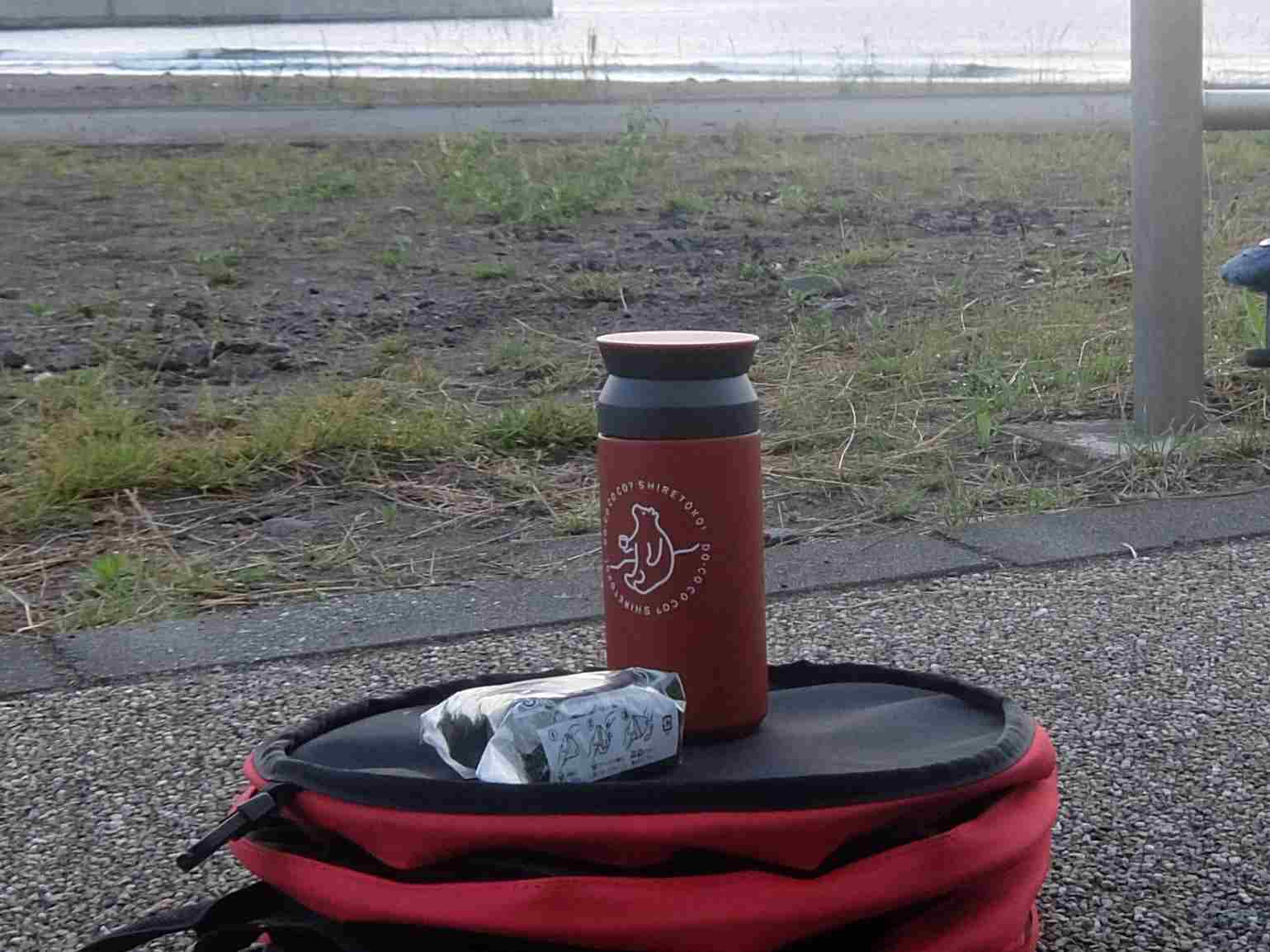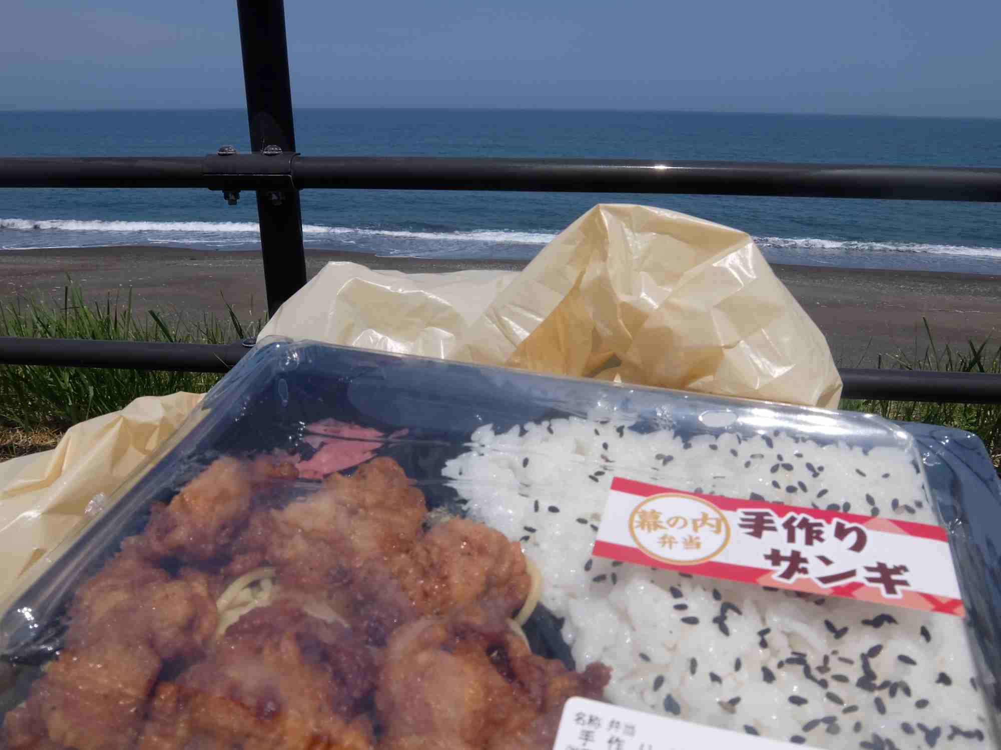 昼食:セコマの手作りザンギ弁当 オフォーツク海を眺めながら