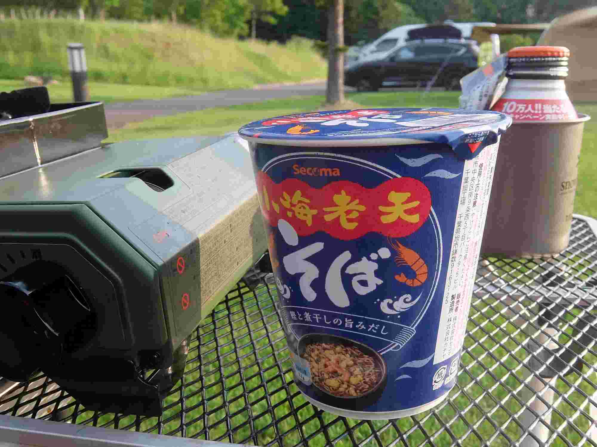 朝食:えびだし塩ラーメン 非常食用で買っていたものをここで消費