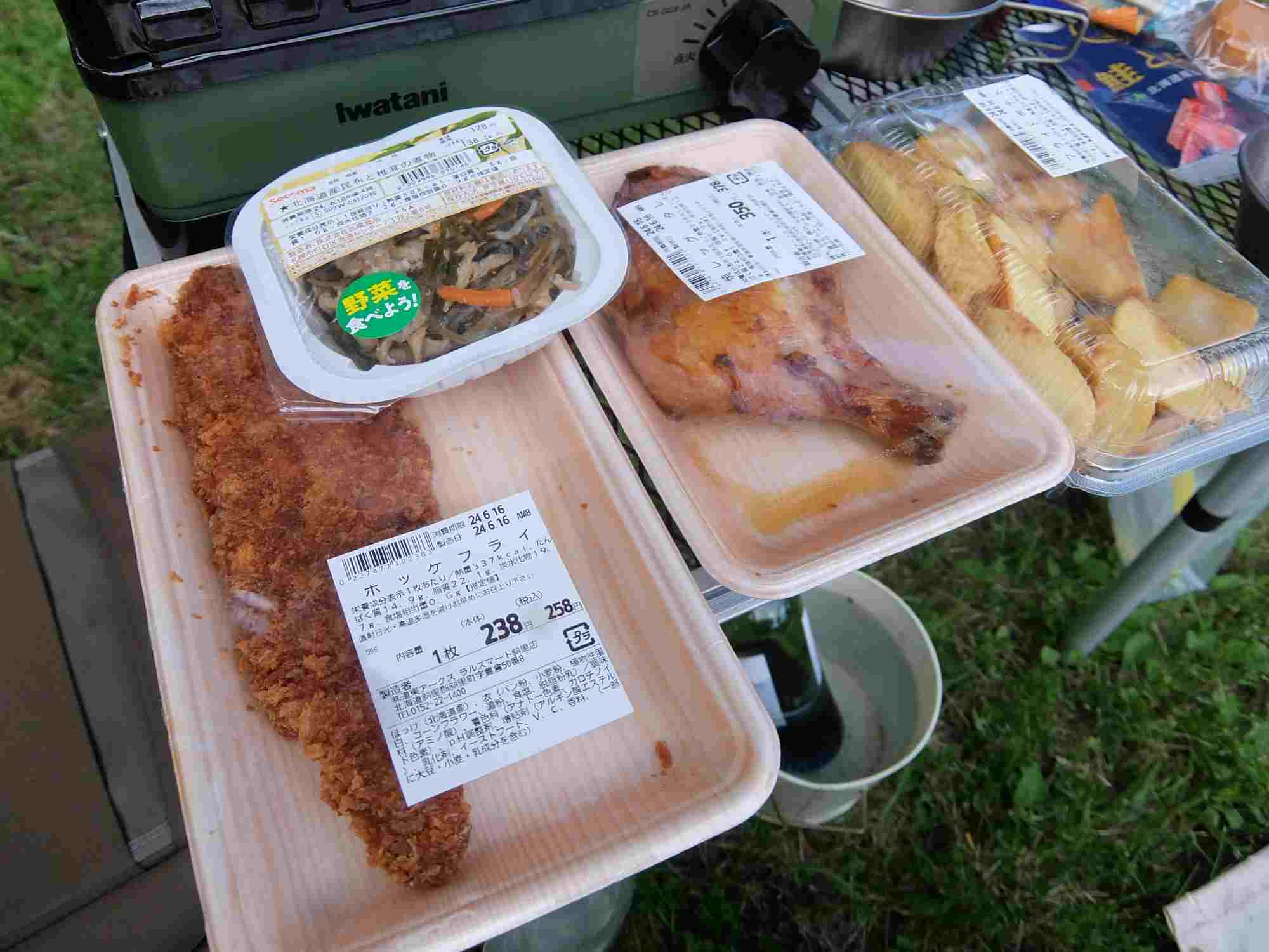 夜食:ホッケフライ、焼いた鶏の足(タレ味)、フライドポテト、昆布と椎茸の煮物