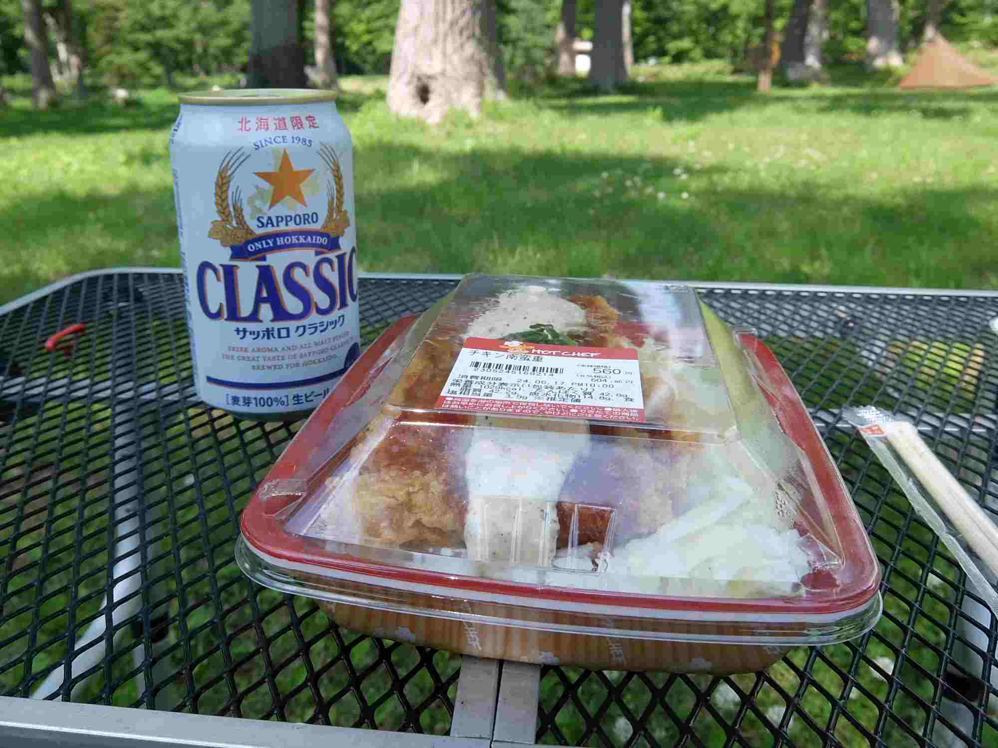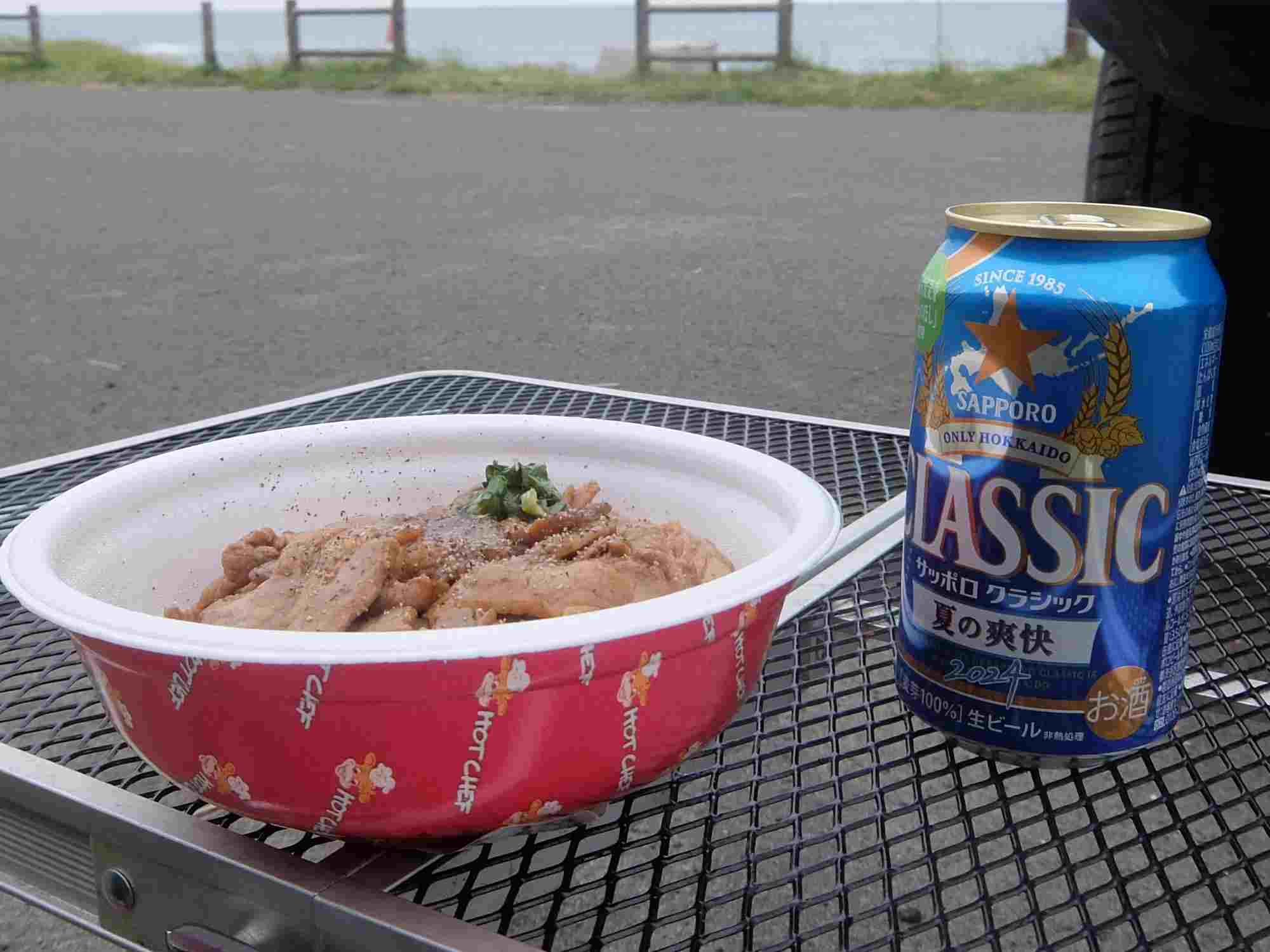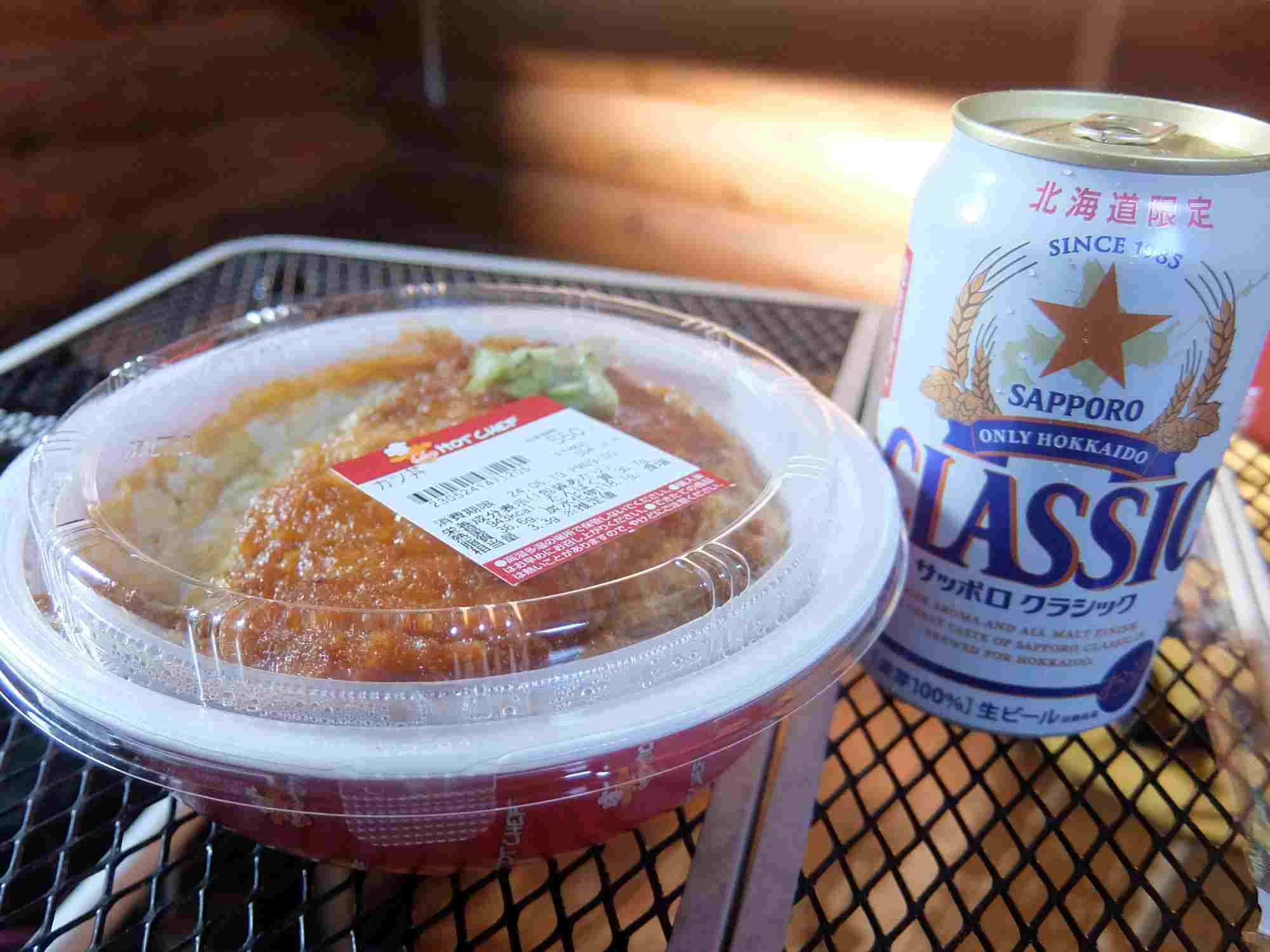 昼食:セコマのかつ丼 サッポロクラシックを添えて