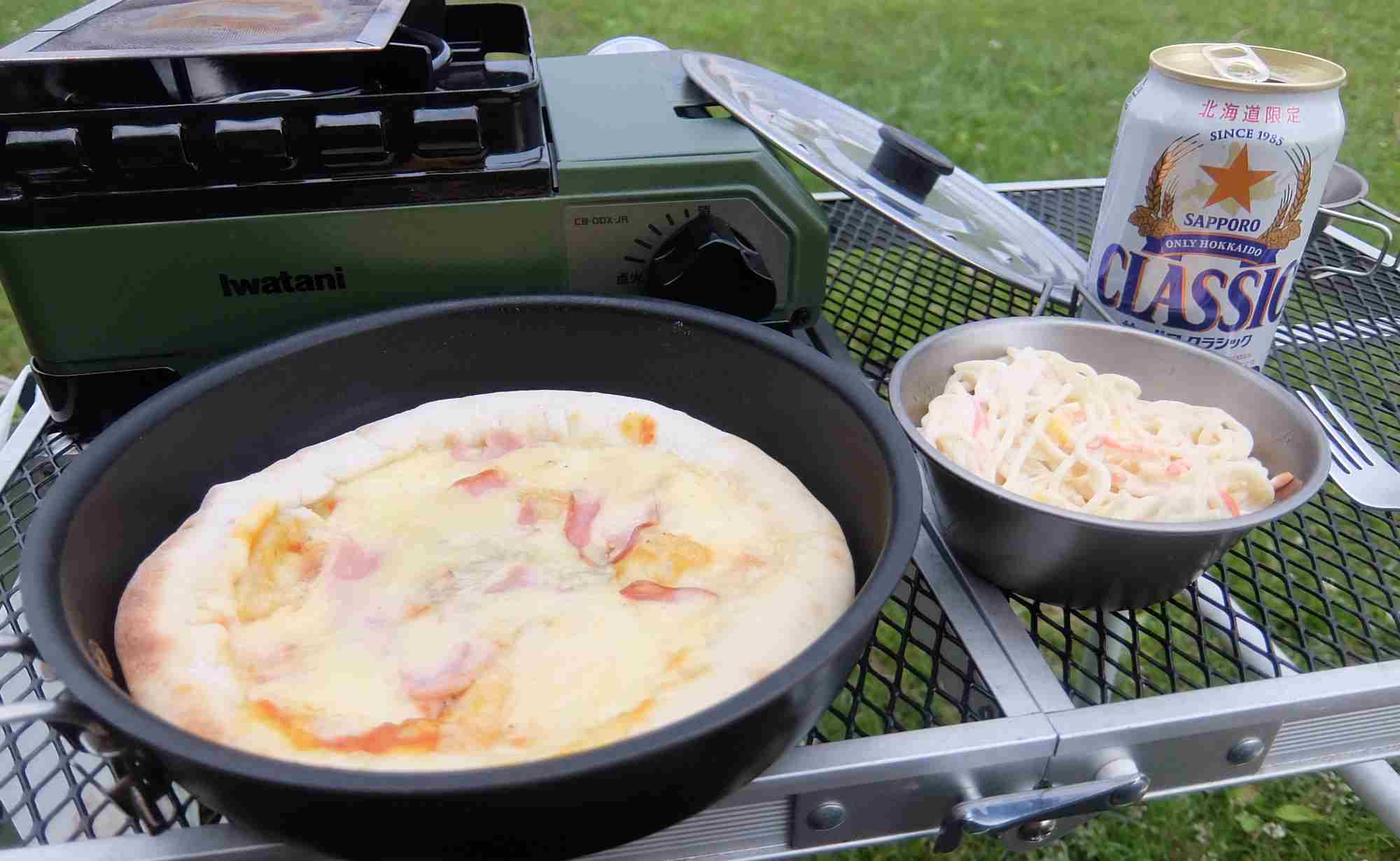 夜食:マルゲリータピサとスパサラ サッポロクラシックを添えて
