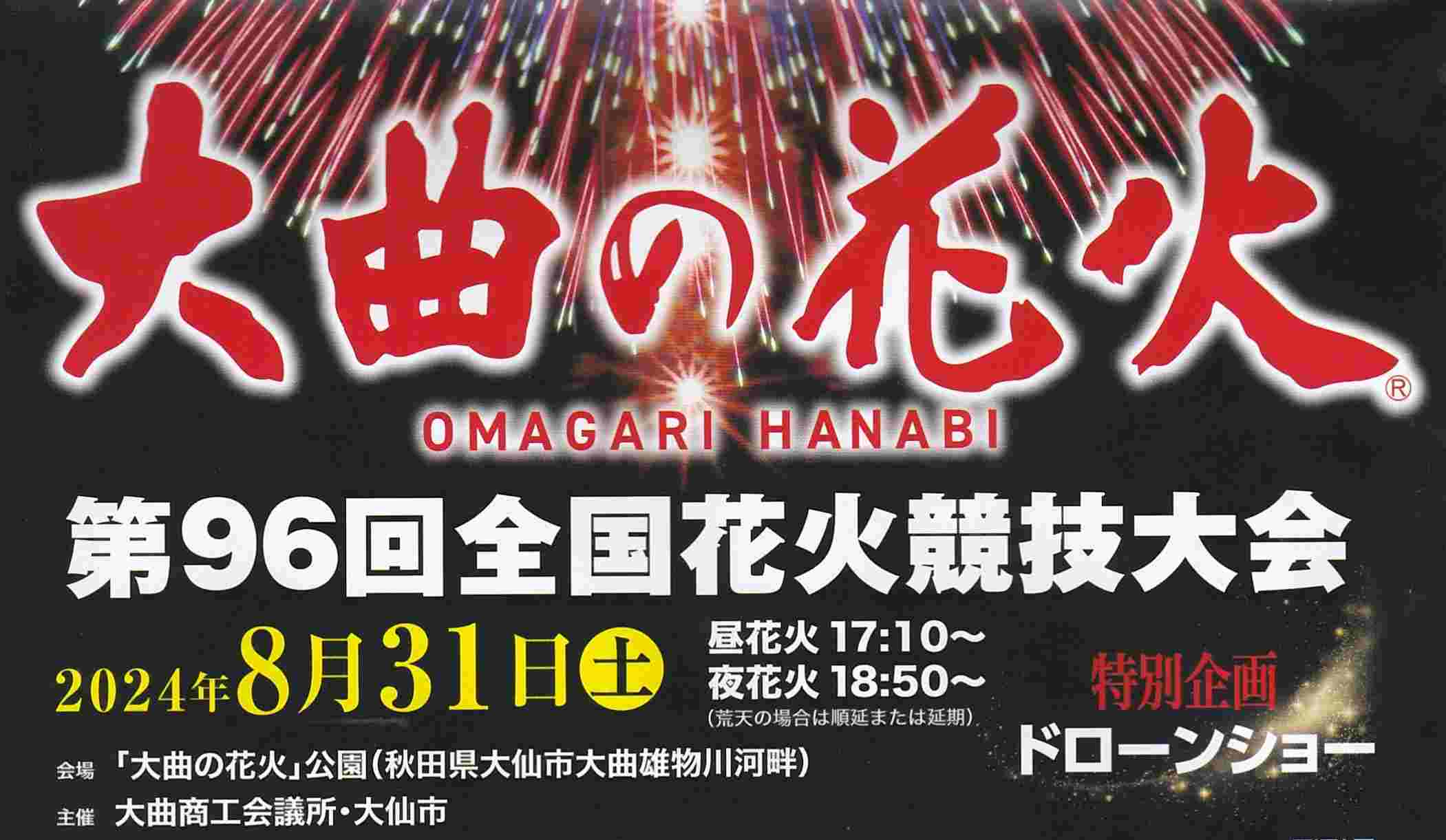 大曲の花火は正式には”全国花火競技大会”です。(今回は第96回)