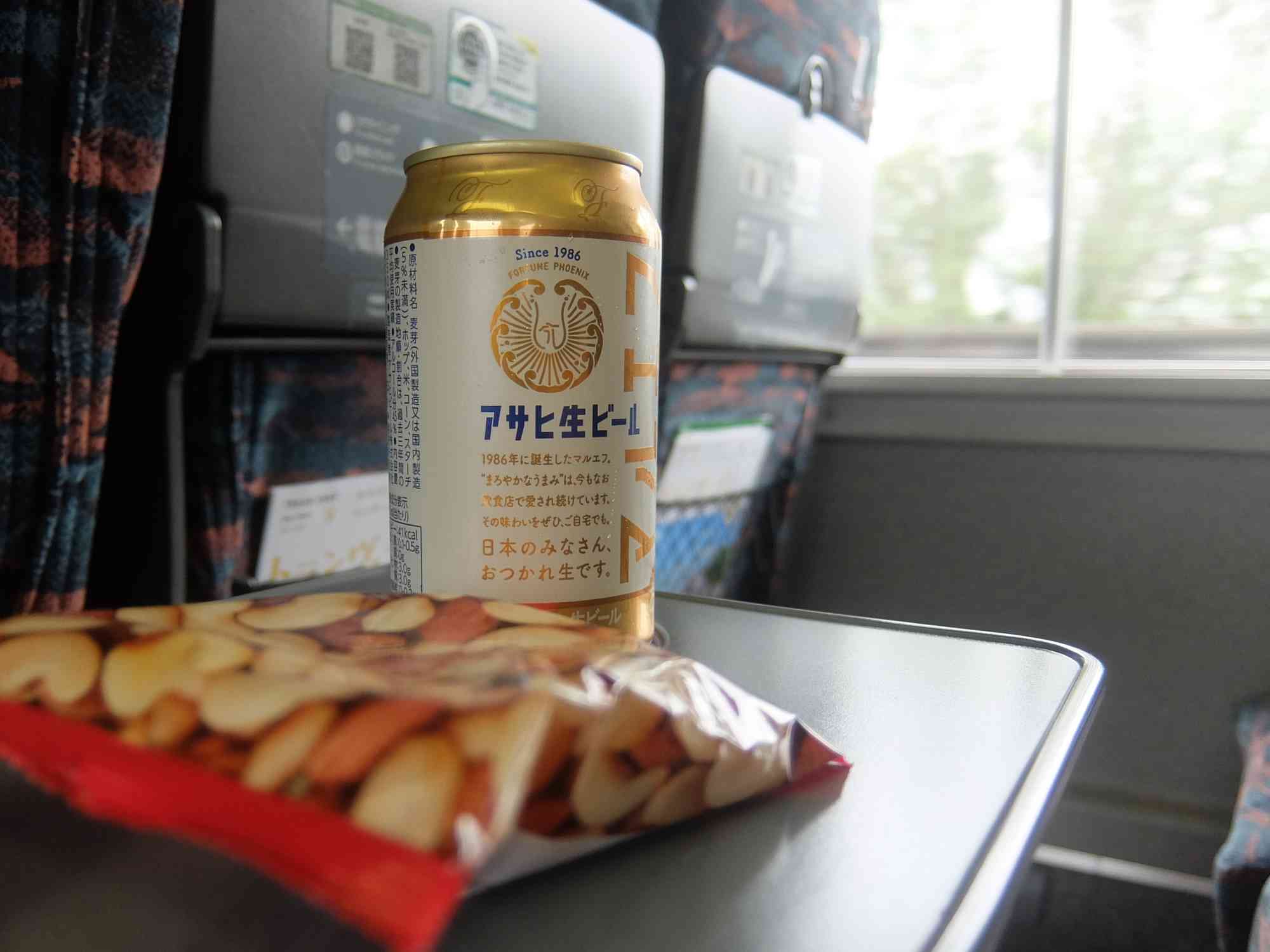 乗車早々に缶ビール開けて、その後、仙台駅到着の12:26までに昼食を済ませておくため