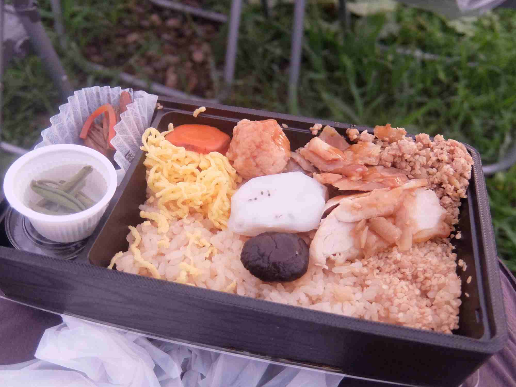 そして早々にお弁当をいただきました。(斜めで持ち運んでしまい片寄っている)